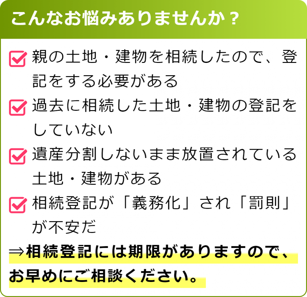 そのため、不動産を取得した場合はなるべく早めに相続登記を行うことをおすすめします。