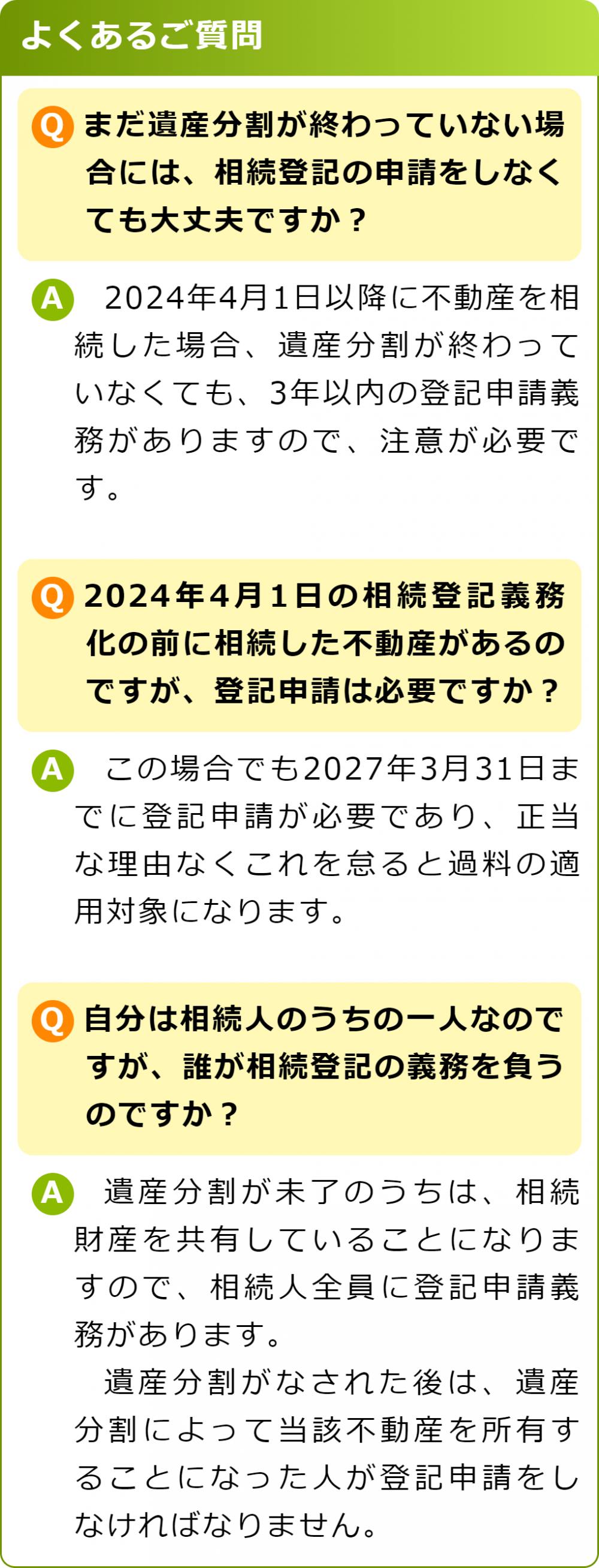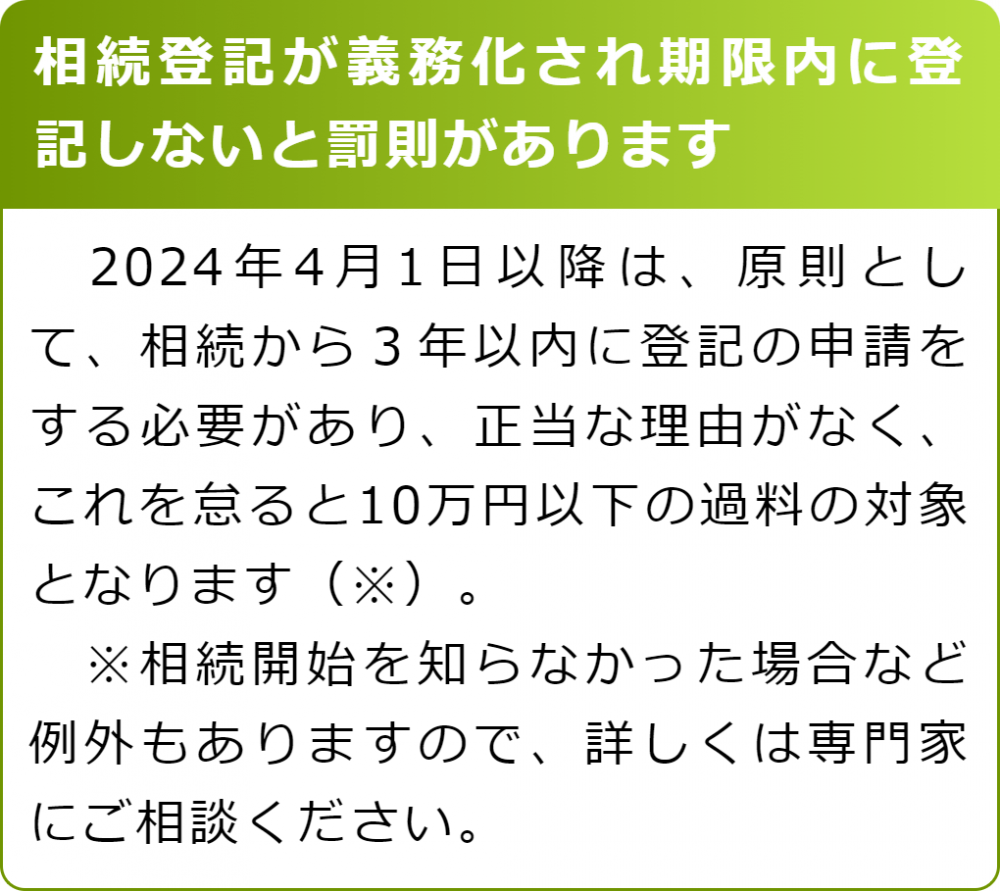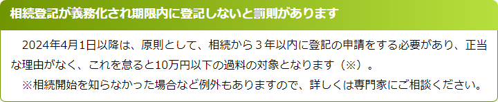 所有者不明の土地や空き家が社会問題となったことなどから法改正が行われ、相続で不動産を取得した場合は一定の期間内に相続登記をすべきことが、法律で義務化されました。