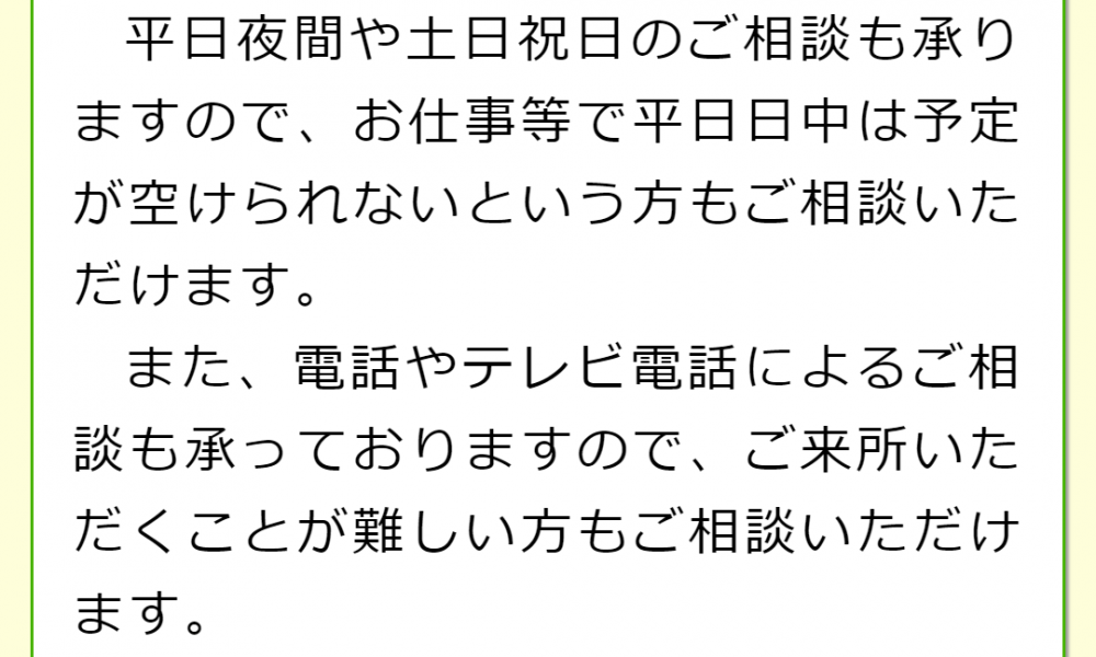 夜間・土日祝の相談も対応します